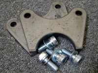 Weld-on type calliper mounting brackets to mount Cosworth/Granada rear handbrake type callipers onto ENGLISH axle, in conjunction with Fiesta mk3 front solid discs. Brackets have holes in them for alignment/access purposes only – they MUST be welded fully before use. |